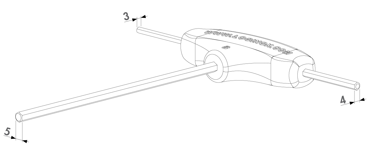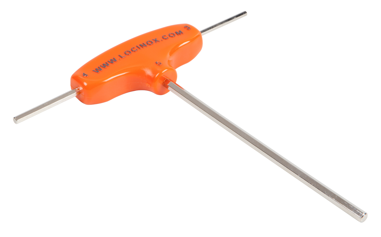 Herramienta para los cierrapuertas. La Locitool tiene una llave M3 para el ajuste de la velocidad y la fuerza del Samson. Una llave M4 para el ajuste de la fuerza del Verticlose. Una llave M5 para la fijación Quick-Fix.