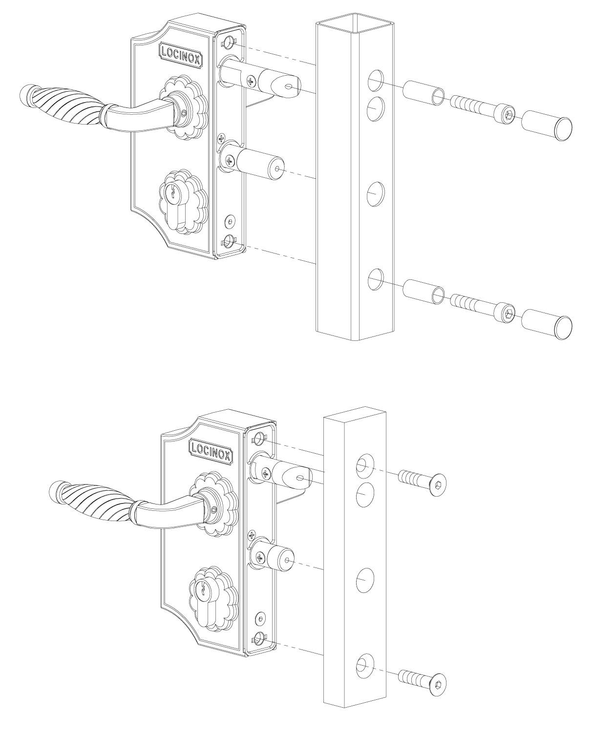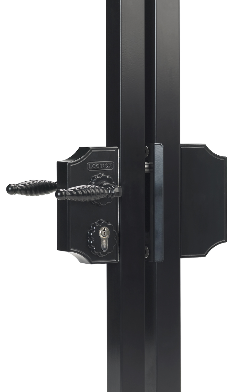 Cerradura estilo forja con carcasa de aluminio y mecanismo de acero inoxidable. Recomendamos esta cerradura como estándar para todas sus puertas ornamentales. El ajuste de 20 mm continuo de los pestillos le permite ajustar perfectamente su puerta para garantizar un cierre óptimo. El cierre de 23 mm de acero inoxidable garantiza un bloqueo seguro. Se suministra con un juego de manillas zamac.